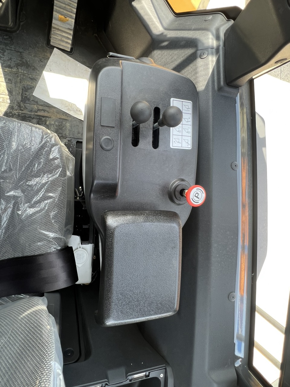 Ghế ngồi có chức năng điều chỉnh vị trí phù hợp với thể trạng người vận hành. Vô lăng thiết kế gật gù
